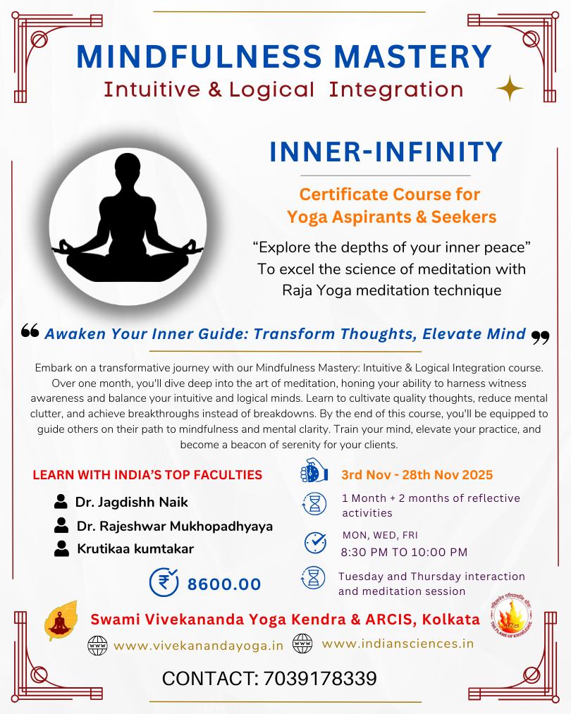 You will master Raja Yoga meditation techniques, develop witness awareness, balance intuitive and logical thinking, and learn to guide others in mindfulness.